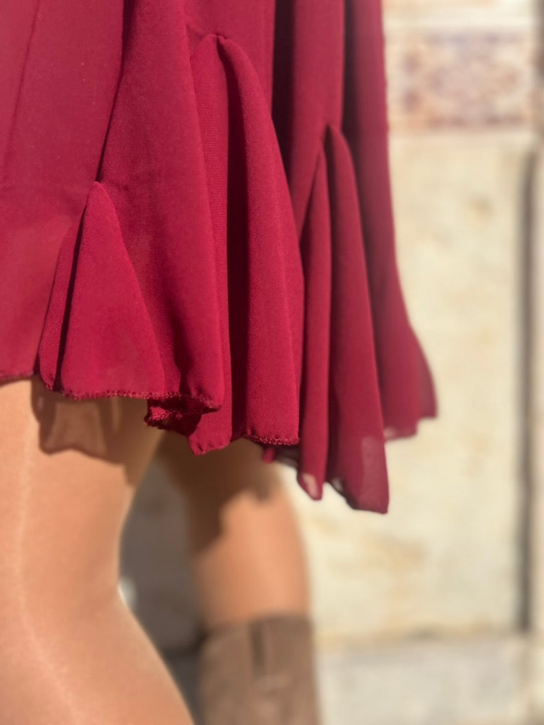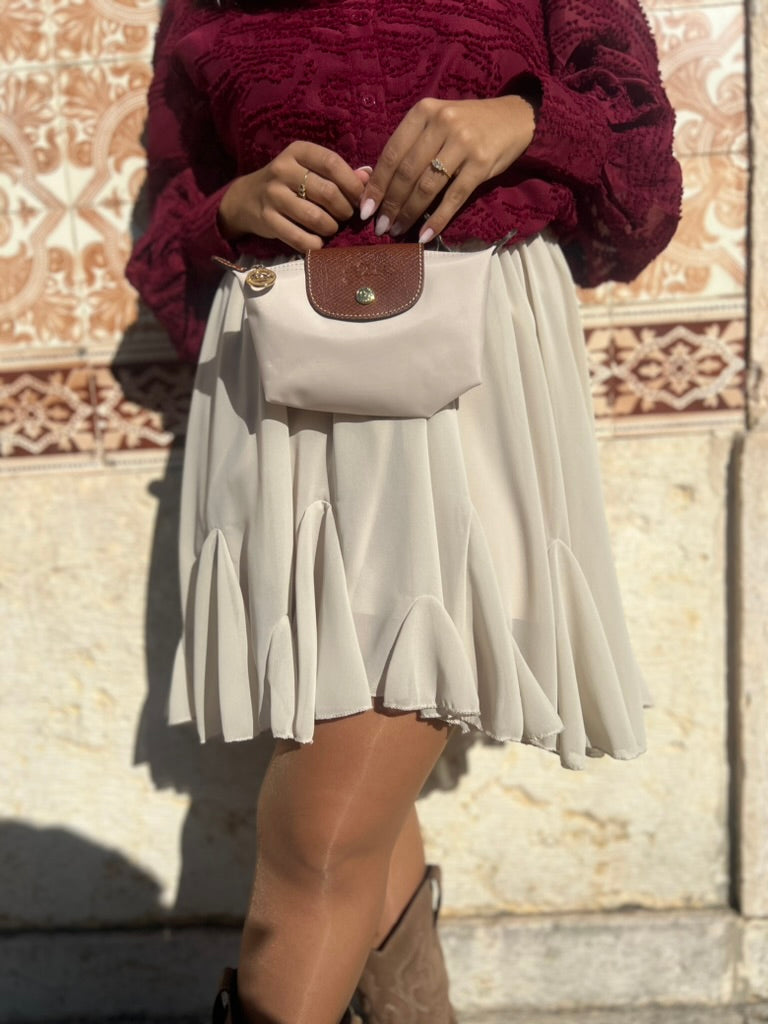 Saia de tecido fluído com folho no acabamento inferior